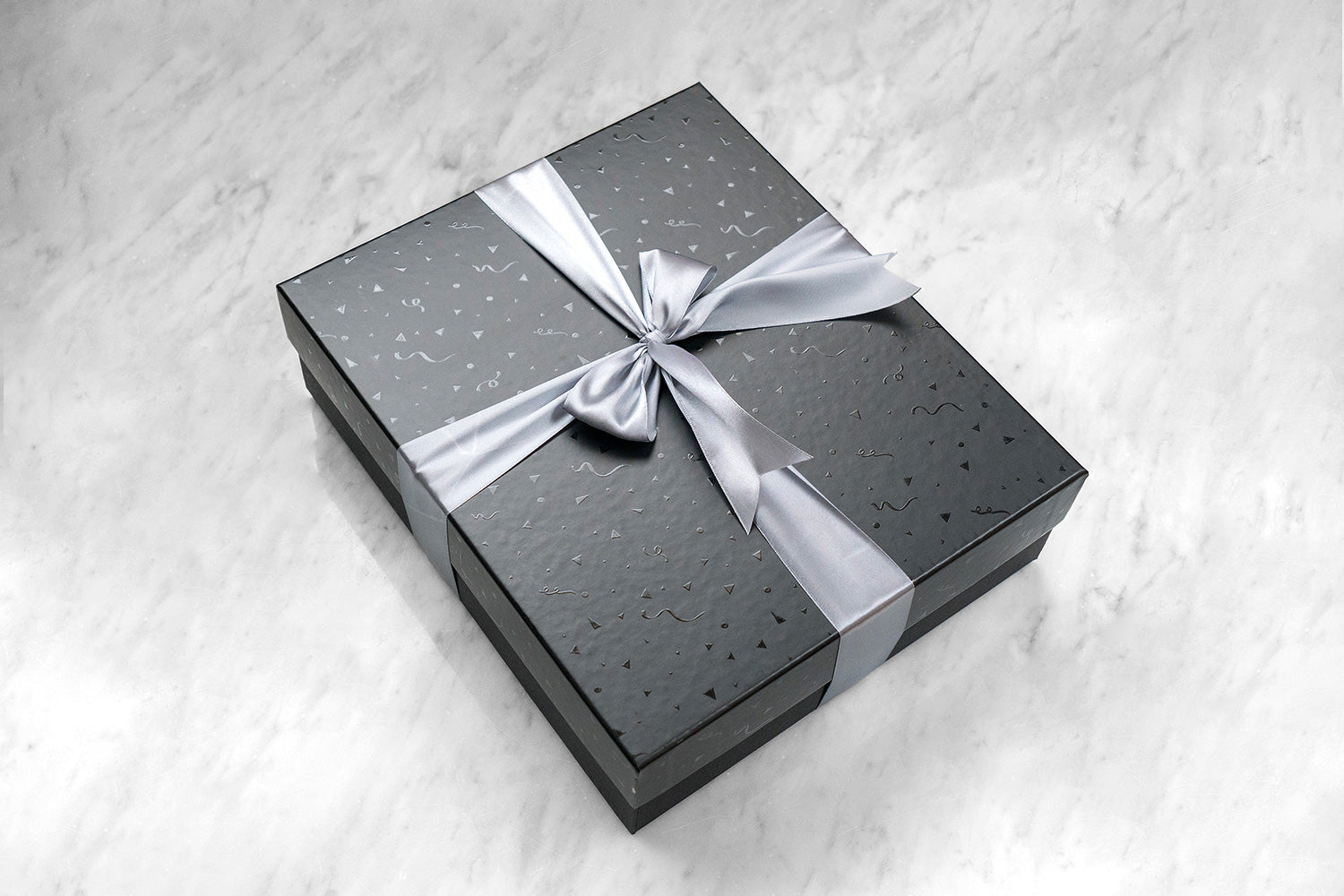 • Caja de Cartón con Tapa Negra+Barniz y Cinta de Satín.